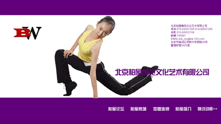 设计小组为 < 柏屋舞苑文化艺术有限公司 > 网站设计的形象页
