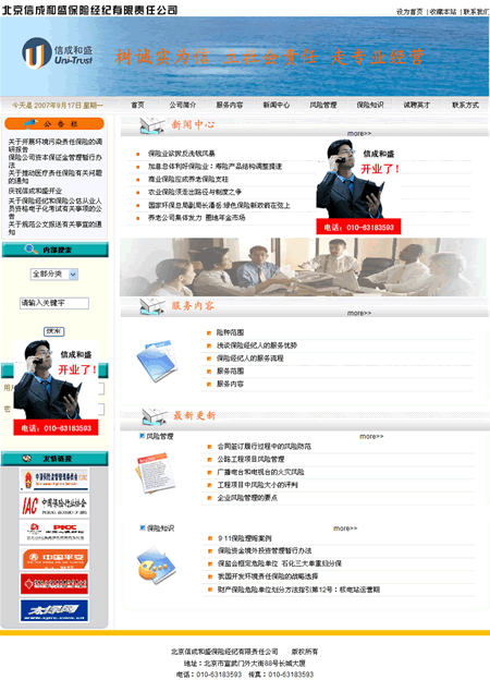 设计小组为 < 信成和盛保险经纪有限公司 > 网站设计的形象页