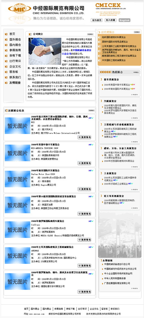 中经国际展览有限公司是经原外经贸部批准的从事国内外展览业务的专业公司,具有独立法人资格,是中国机械设备进出口总公司的控股公司。