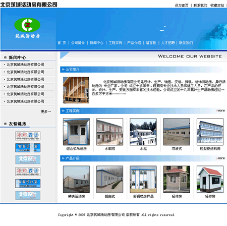 设计小组为 < 北京筑城活动房有限公司 > 网站设计的形象页